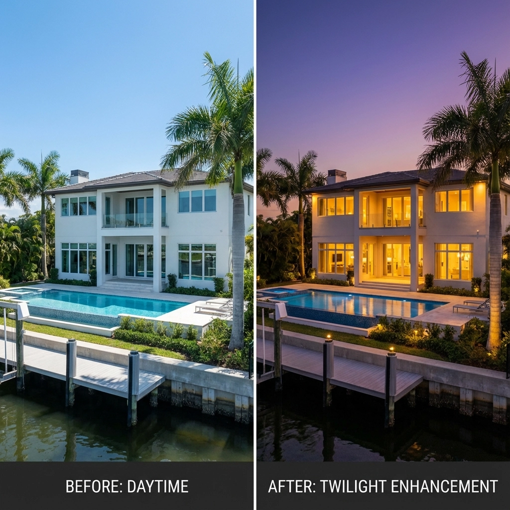Twilight photography has long been the gold standard for creating emotional connection with potential buyers. Those warm, glowing windows against a dusky sky don't just showcase a property: they sell a lifestyle. But traditional twilight shoots come with significant challenges: weather dependency, tight timing windows, and premium pricing that can strain marketing budgets.