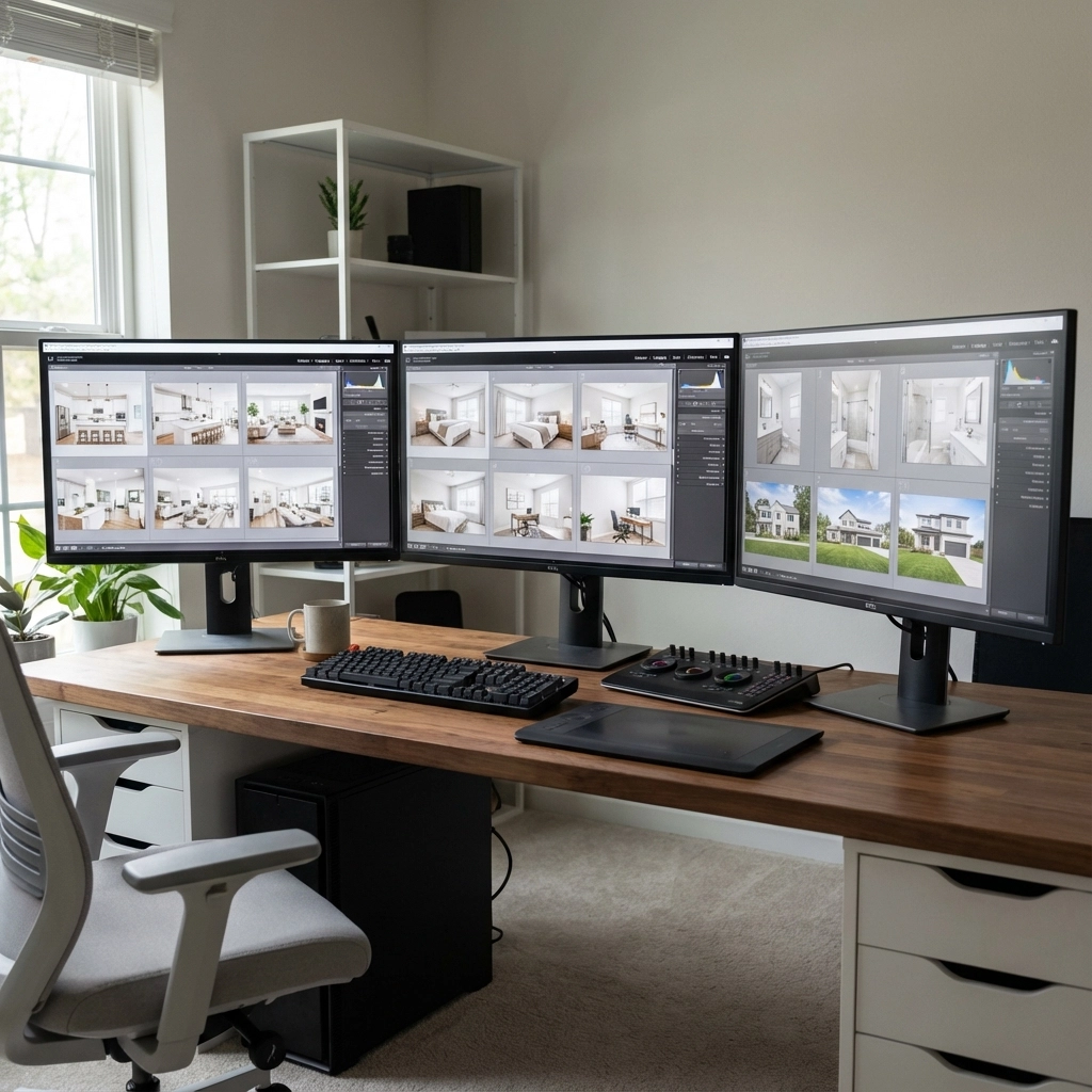 AI batch editing technology analyzes the entire image set from a property shoot and applies consistent corrections for exposure, color balance, and sharpness across all photos. This ensures uniform quality while dramatically reducing processing time, allowing photographers to deliver complete marketing packages faster and maintain competitive pricing structures.