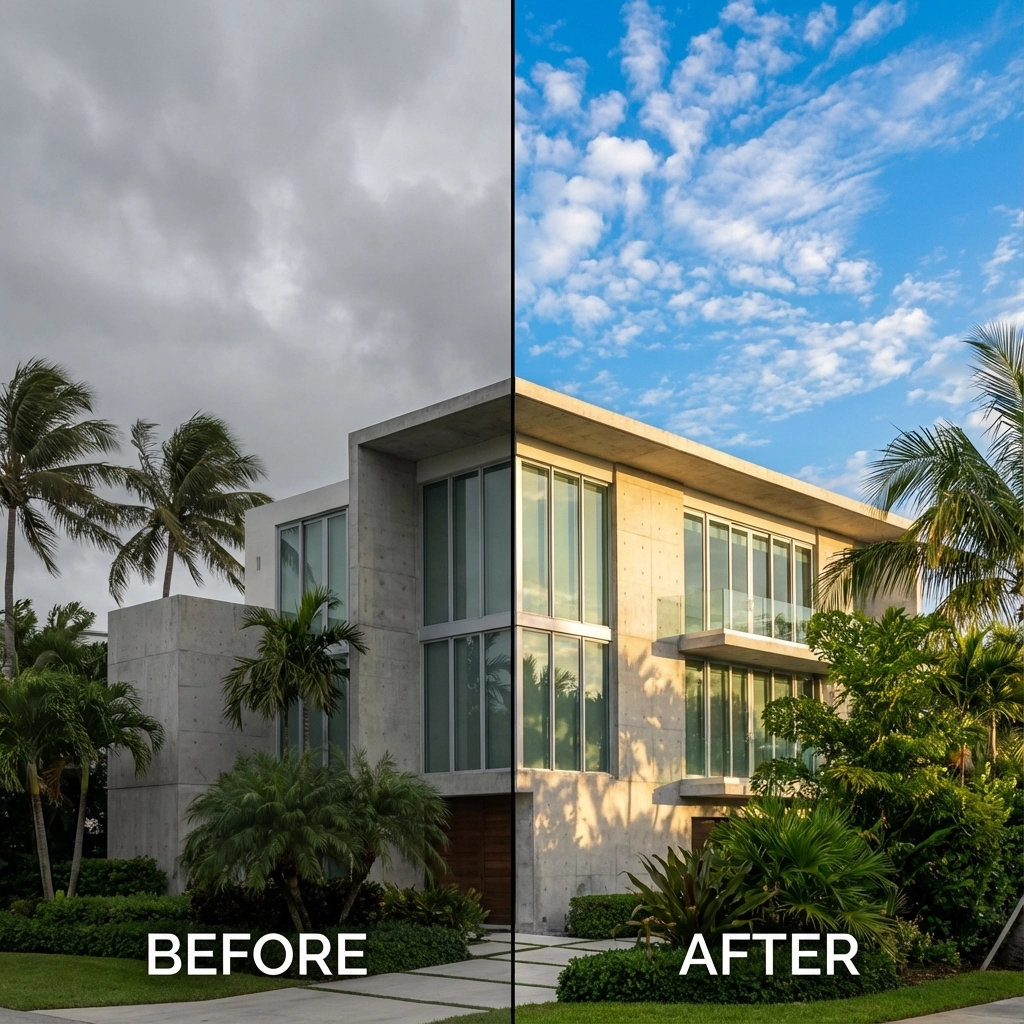 The sophistication of modern AI sky replacement goes far beyond simple copy-paste operations. Advanced algorithms automatically adjust shadows, reflections, and ambient lighting to match the new sky, ensuring the final result appears completely natural. This technology is particularly valuable for Tampa Bay properties with water views, where dramatic skies can enhance the appeal of waterfront lifestyle marketing.
